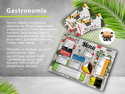 Materiały reklamowe tworzone na potrzeby restauracji i małej gastronomii.